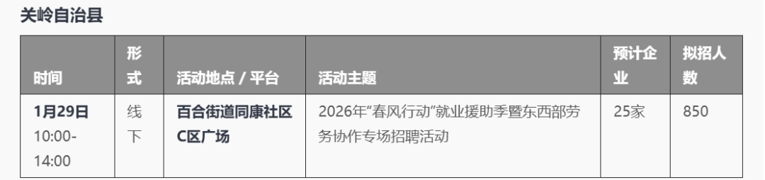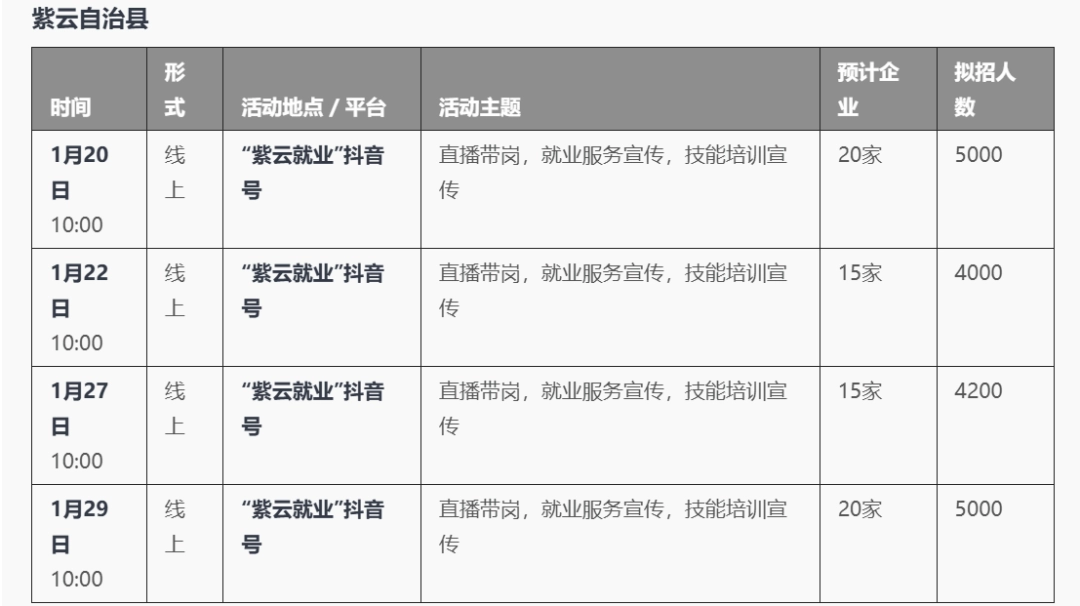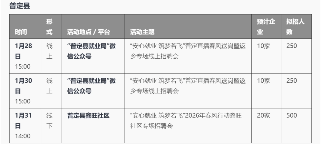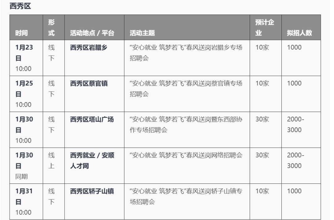 安顺市“安心就业 筑梦若飞”春风送岗系列招聘服务活动时间表(2026年1月)