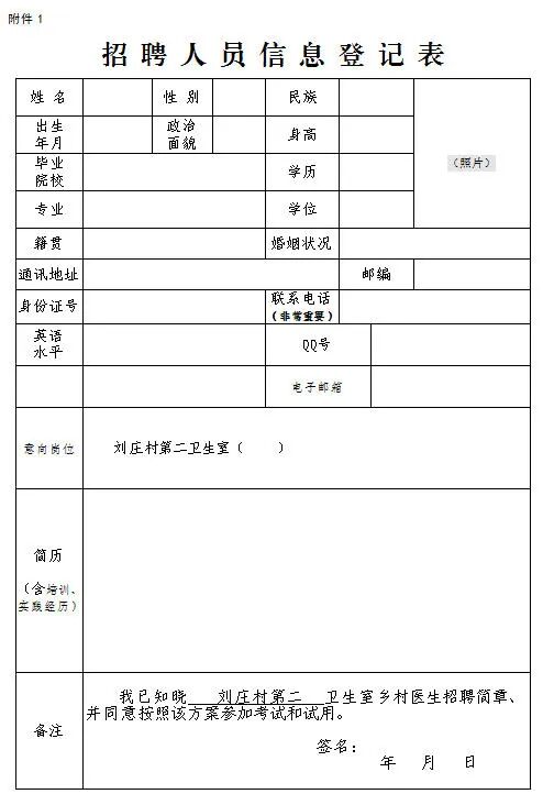 (1)填写《招聘乡村医生报名信息表》。