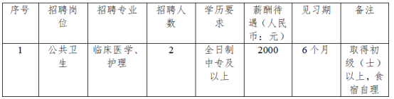见习期6个月,见习期满后卫生院根据见习期间工作表现、工作情况决定是否续用或转为编外合同人员管理。